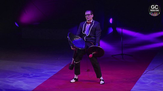 Si le cirque a su traverser l’histoire en surmontant de nombreuses crises, c’est essentiellement grâce à ses qualités d’adaptation. Cesar Diaz en est l’exemple parfait. Son jeu d’auguste de reprise, ancré dans la tradition a su emprunter aux bruitages des consoles de jeux et aux affrontements virtuels. Passionné de music-hall, il se montre excellent parodiste dans son irrésistible interprétation de My Way. Cesar représente la quatrième génération d’une famille de cirque portugaise. Il débuta dès l’âge de 6 ans comme équilibriste sur des rouleaux. À 18 ans, il décida − au grand dam de son père – d’abandonner les rolas-rolas pour être clown. À force de travail et d’imagination, il s’est créé ce personnage unique qui associe le public à ses sketches sans jamais le ridiculiser.