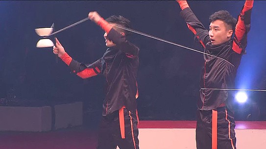 Ce quatuor masculin venu de Taïwan a transformé un aimable divertissement pour jeunes filles en un formidable numéro qui rassemble tout ce que la technique du diabolo compte de difficultés avec des exercices inconnus jusqu’ici. Chien Shuo-Chin, Chen Ming-En, Lin Tsung-Ying et Yu Chia-Hao oublient musiques et costumes traditionnels pour nous donner une version résolument collective et new-look de cette spécialité. La France les a découverts dans l’émission « Le Plus Grand Cabaret du Monde » après qu’ils aient été récompensés au Young Stage Circus Festival de Bâle, alors volez petits diabolos !