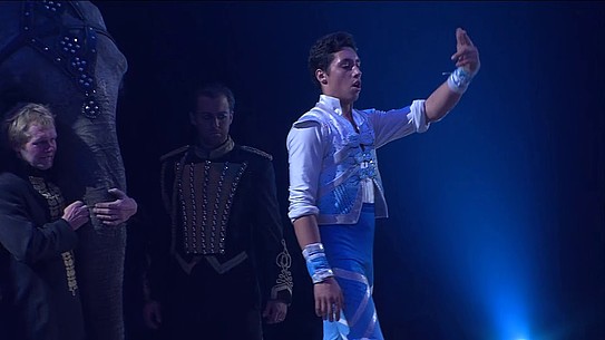 Un troupeau qui trotte autour de la piste avec, courant sur leurs dos, René Jr, une sorte de Mowgli moderne.