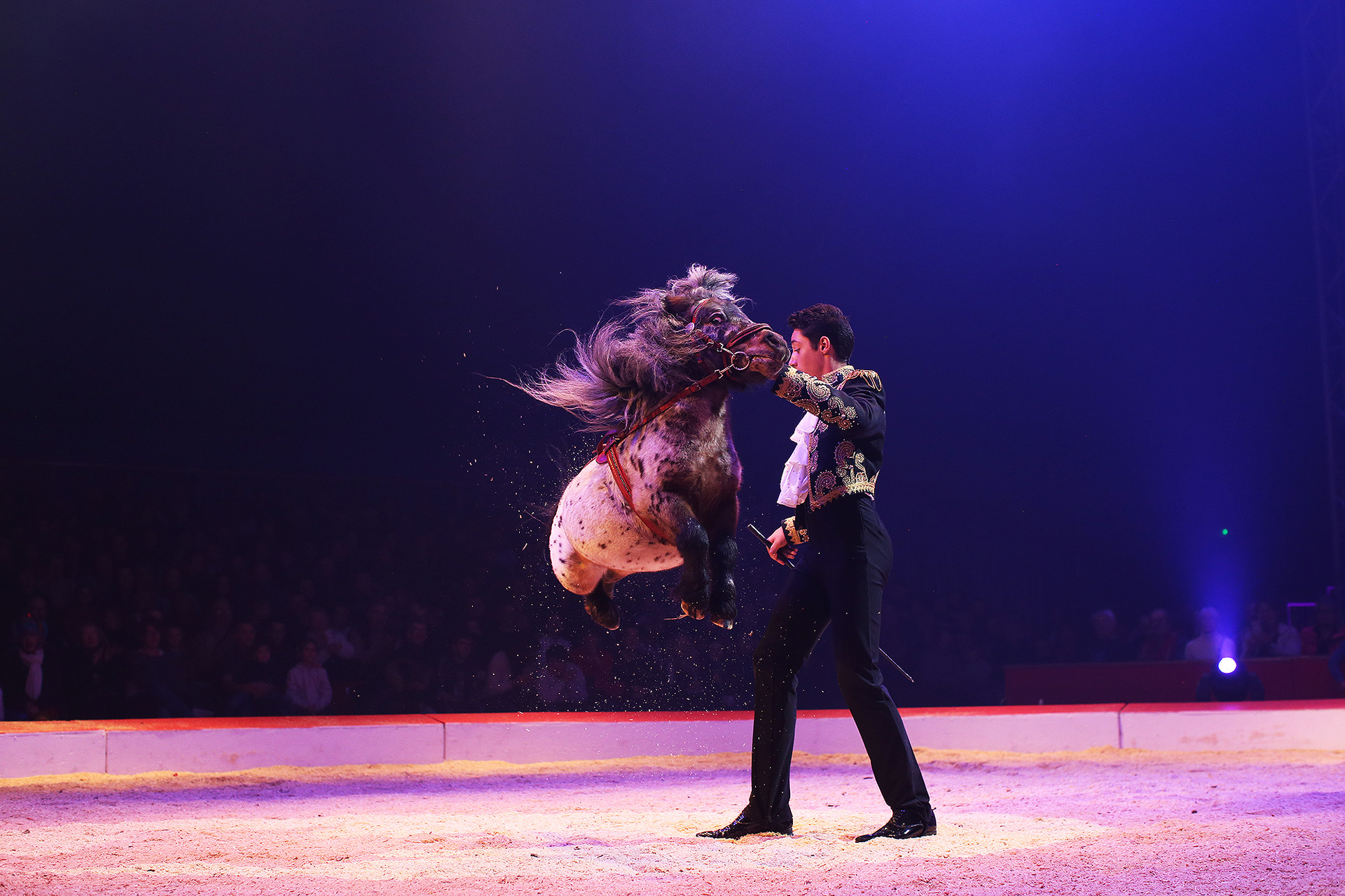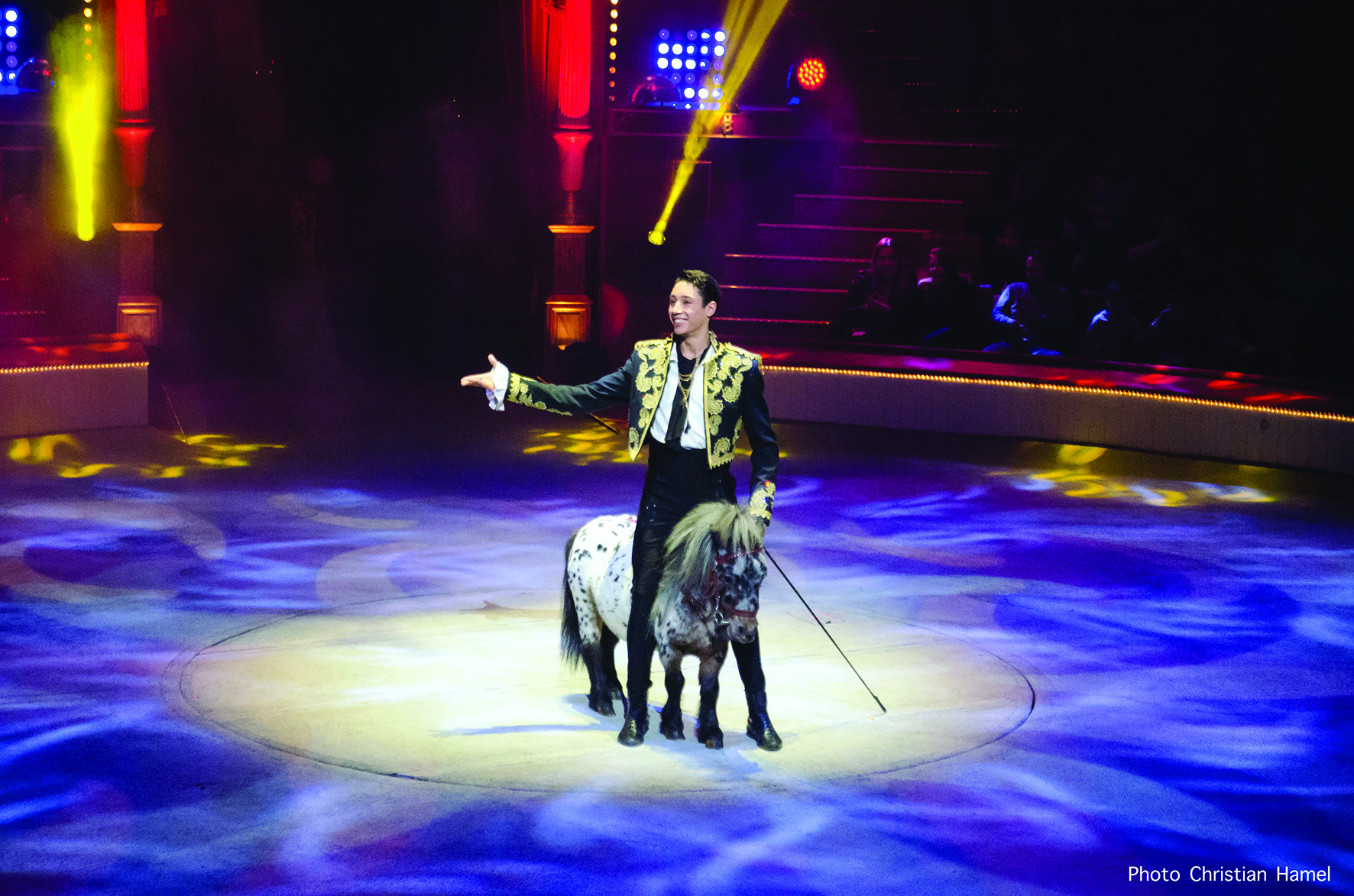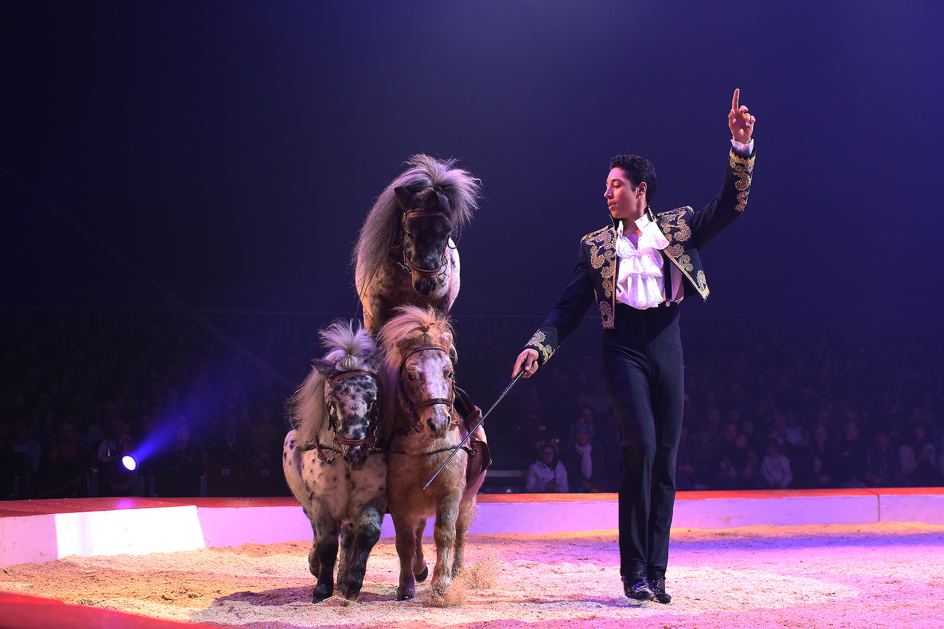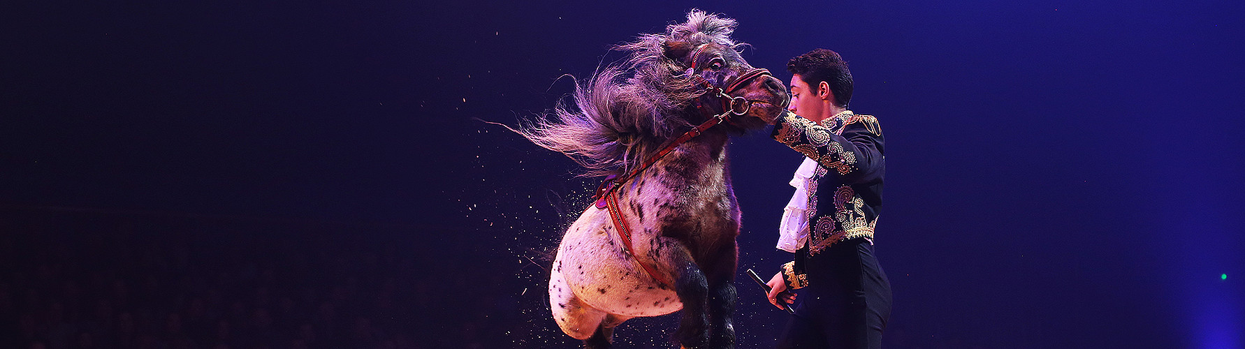 Au cirque, les poneys sont souvent l’objet d’amusement des enfants qui les voient trottiner ̶ et parfois désobéir ̶ sous l’oeil bienveillant d’un écuyer. René Casselly Jr a créé une façon nouvelle de mettre en valeur ses petits protégés en s’inspirant de ce que font les chiens sur la piste : il les appelle les uns après les autres pour faire étalage de leurs talents non sans humour parce que, au cirque comme au manège, le poney est un animal qui sait aussi jouer la comédie !