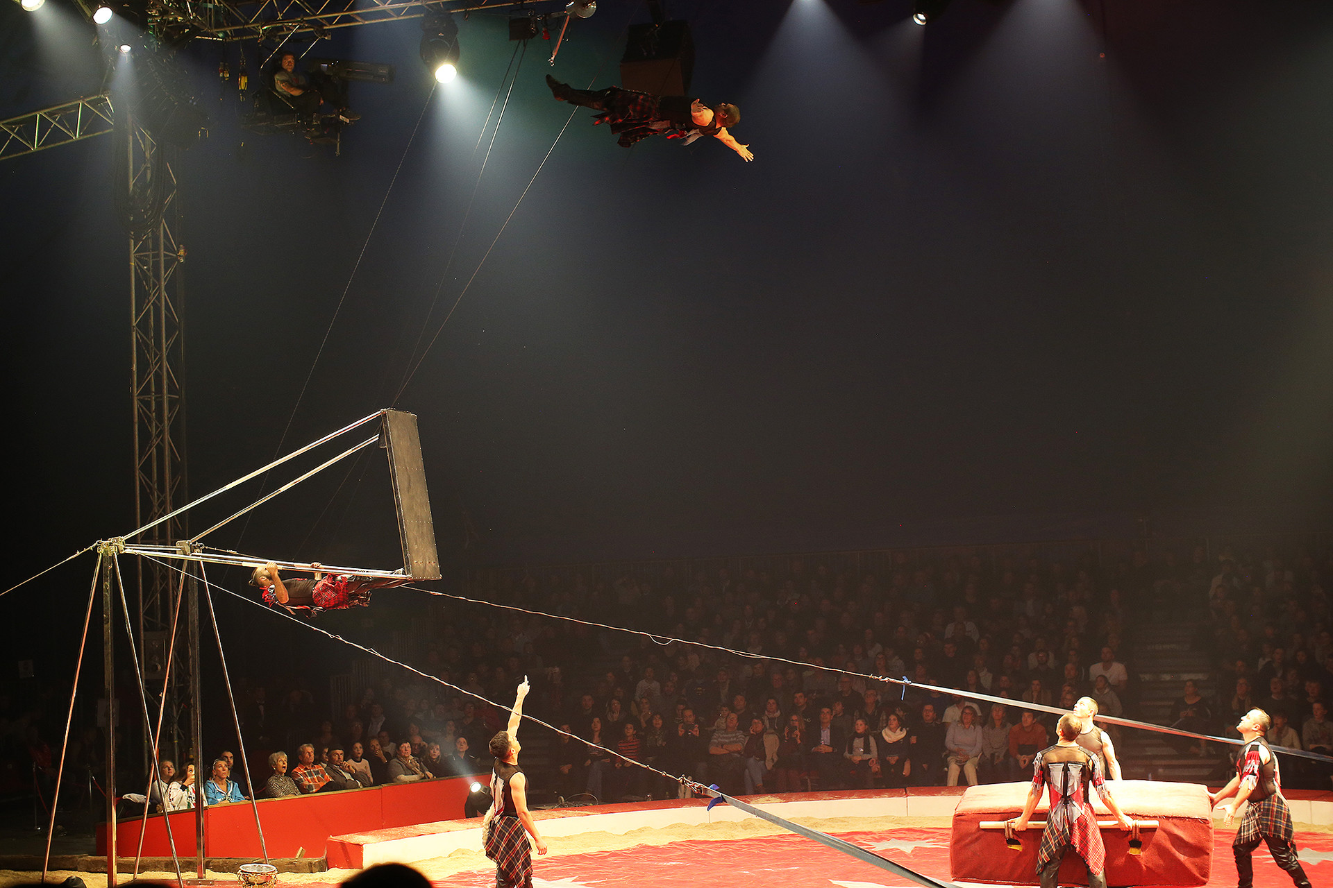 Le peintre Fragonard avait illustré à sa manière les plaisirs de l’escarpolette. Avec les Cheban, le terrain de jeux se transforme en base de lancement de missiles. Des missiles humains qui tournent très haut des sauts périlleux avec plusieurs pirouettes. Il faut une bonne dose de courage pour se lancer ainsi dans l’espace avant de se recevoir sur un simple matelas, et le courage ne semble pas manquer à ces acrobates exceptionnels qui se sont produits dans le monde entier jusqu’aux antipodes de notre planète.
