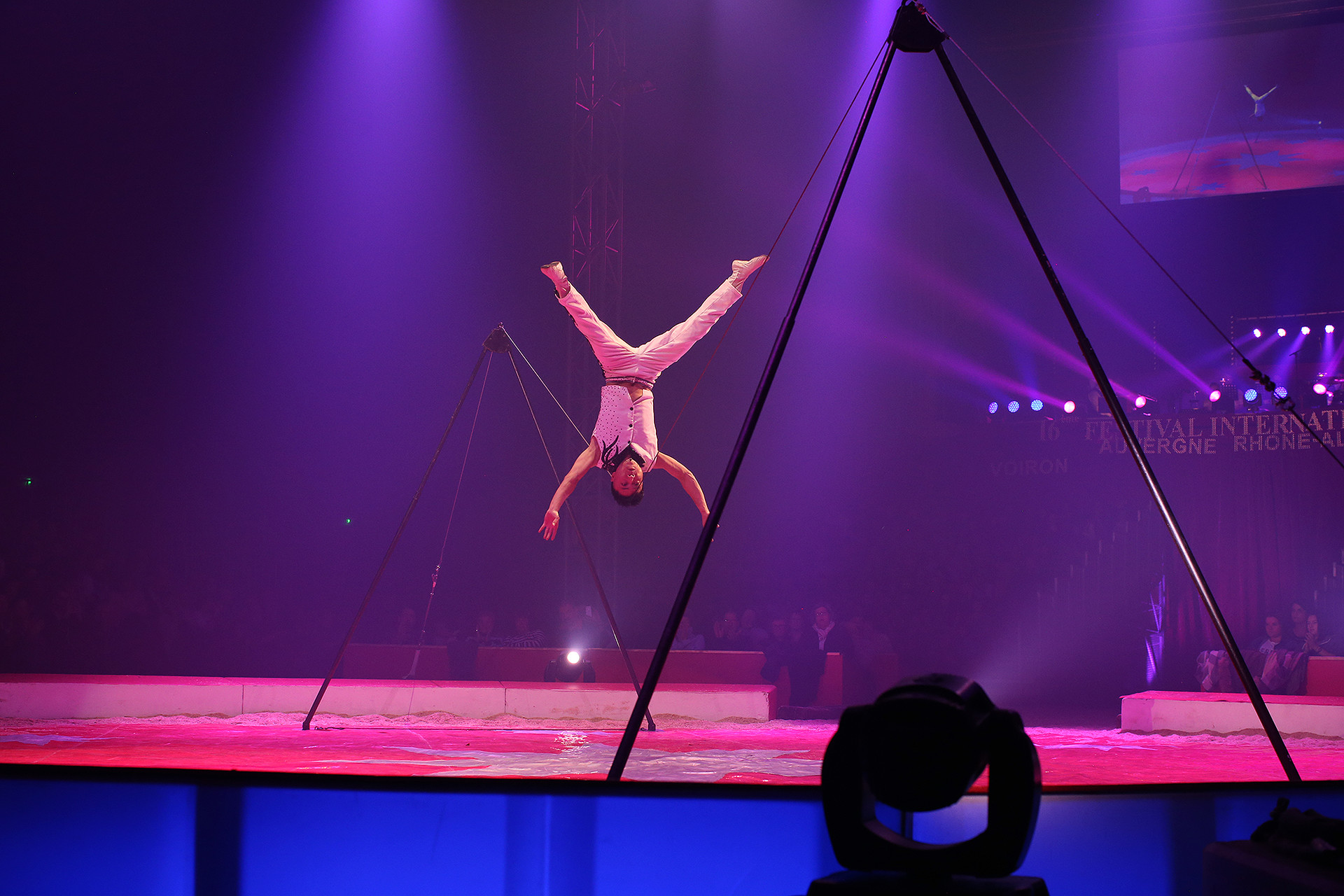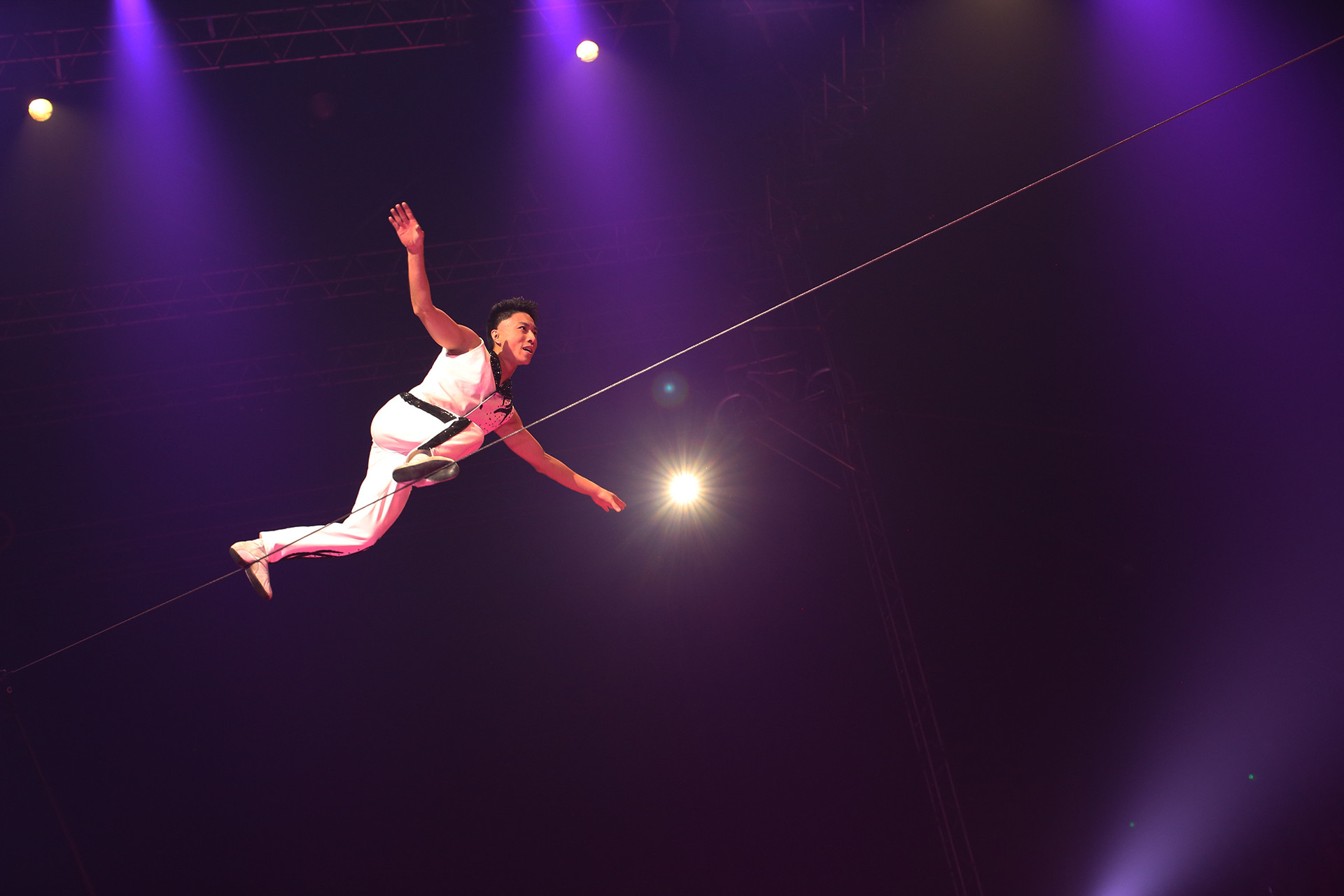 Quand on le voit évoluer sur son fil, on pourrait croire qu’il y a fait ses premiers pas. Zhang Fan n’avait que six ans lorsqu’il s’inscrivit à l’école de cirque de Pékin. À douze ans, il obtenait sa première récompense au Festival de Wuhan en 2000, il récidivait l’année suivante à Budapest et deux ans plus tard, obtenait une Médaille d’Or au Festival International de l’Avenir à Paris. Depuis, il a travaillé dans les plus grands cirques du monde comme le Cirque du Soleil, le Cirque Knie, Conelli et le Big Apple Circus. Durant les 8 minutes que dure son numéro, il ne descendra pas de son fil et s’équilibrera sur la tête sans coussin, sur les mains , sur une échelle et sur un monocycle, la tête en bas. Il y a quelque chose de fascinant dans la manière dont il enchaîne ses performances. « Un prodige au sang froid invraisemblable » disaient de lui ses entraineurs.