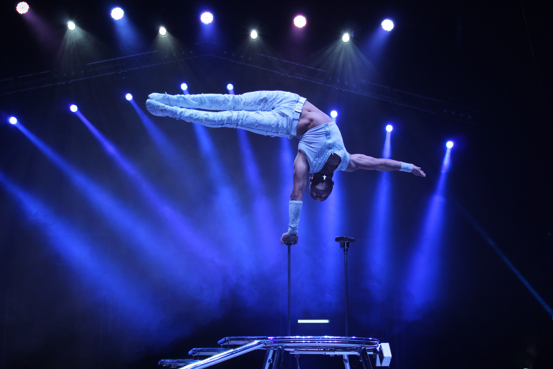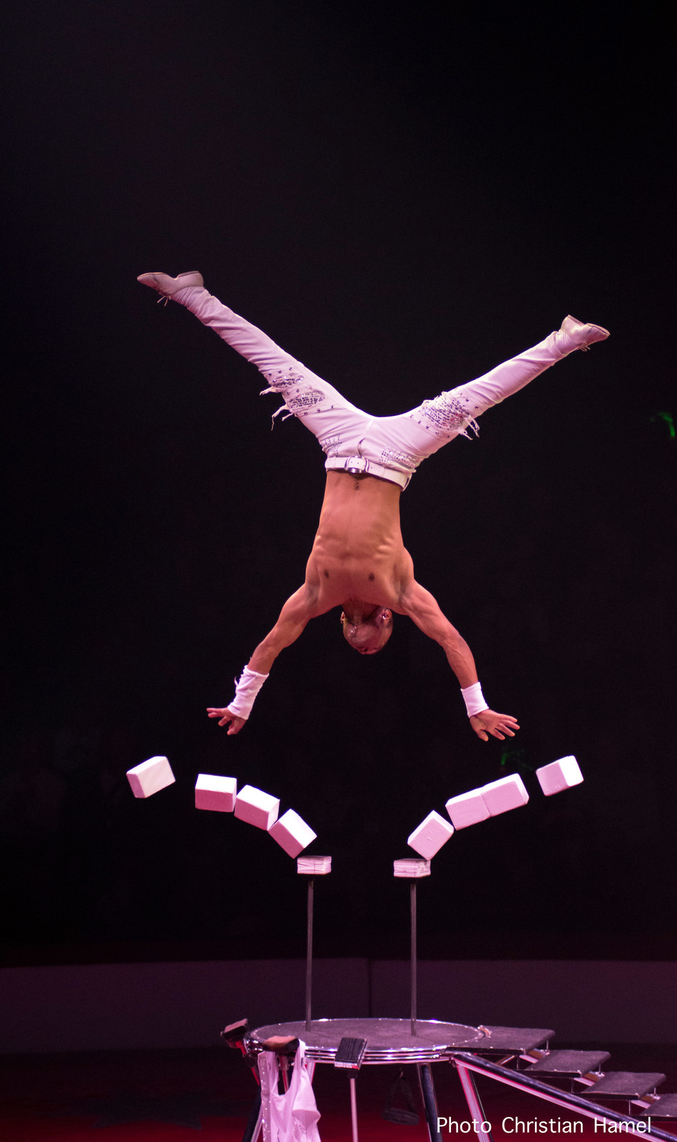 Le cirque nous raconte parfois de belles histoires. Celle-ci commence en Allemagne dans les années vingt avec une troupe d’acrobates venus du Maroc, celle d’Abdullah Liazeed qui travaille dans les plus grands cirques du pays. Après la guerre on les retrouve en Espagne où, en 1958, Abdullah tourne avec son propre cirque au programme duquel figure un tout jeune équilibriste prodige : son fils Omar. Omar va se produire dans les plus grands établissements. Il épousera la belle Ketty Jarz qui est alors la quatrième femme de l’histoire du trapèze volant capable de tourner le triple saut périlleux. Leur fille Zaïda sera équilibriste avec son père, elle rencontrera un artiste cubain, Francisco Arano Aleman et l’épousera. Francisco est aussi trapéziste volant mais, à l’école du cirque de Cuba où il a été formé, on sait tout faire sur une piste et il se joint au numéro familial d’équilibres. C‘est leur fils qui se produit ce soir : Armando Arano Liazeed, un petit prodige, lui-aussi, qui porte les gènes d’une dynastie et décline littéralement le langage acrobatique avec la souplesse du félin jusqu’à la chute finale, un véritable feu d’artifice !