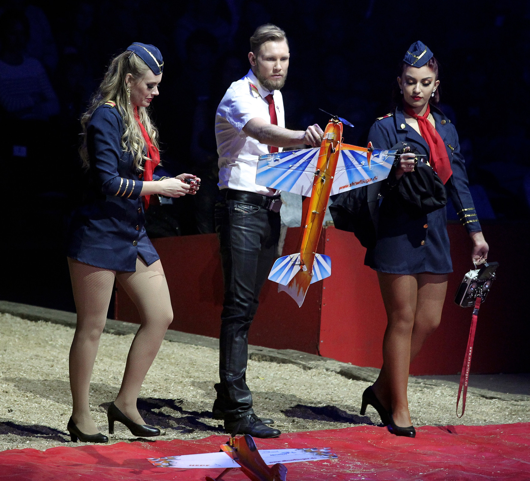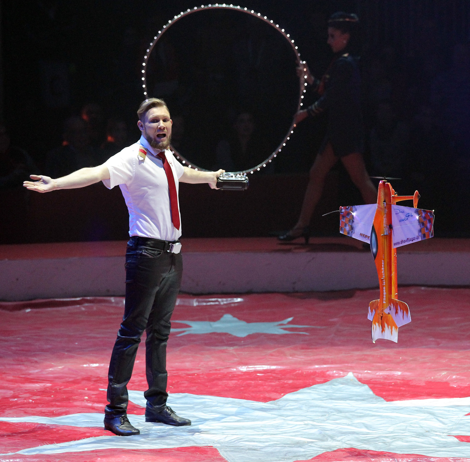 Le Festival de Voiron est une sorte de miroir du cirque d’aujourd’hui : il propose la tradition avec les meilleurs numéros d’animaux, les acrobates les plus forts et les grands clowns mais il fait aussi découvrir des formes les plus évolutives du cirque de demain. Voici un numéro inédit présenté par un jeune allemand, Daniel Golla qui ne dompte pas d’animaux et ne fait pas de sauts périlleux. Il laisse ce soin aux modèles d’avions téléguidés qu’il pilote. Il est né en 1989. Passionné de modèles réduits, il était déjà, à dix ans, un as du vol télécommandé. Il fut le premier à présenter cette spécialité en décembre 2009 au cirque FlicFlac, dans sa ville natale de Kassel. Depuis, il a participé à de nombreuses émissions à la télévision allemande et il est devenu la coqueluche des jeunes spectateurs du pays. Il démontre une incroyable précision, lorsqu’il demande à ses petits avions de voler en rase-motte pour enchaîner des figures acrobatiques presque au ralenti. Il vient de triompher durant plusieurs mois au prestigieux cabaret du Royal Palace de Kirrwiller.