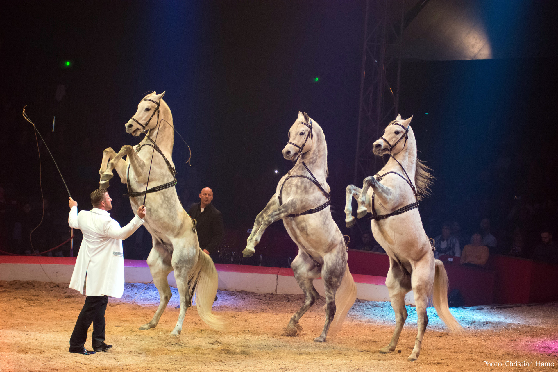 Le cirque moderne fête cette année le 250e anniversaire de sa création. C’est autour du cheval qu’il est né et qu’il s’est développé en Angleterre puis en France mais, c’est en Allemagne, au cirque du grand directeur Ernst Renz que sont apparus les grands groupes de chevaux en liberté. Ils étaient dirigés uniquement avec la voix et les indications de la chambrière, ce long fouet que le maître écuyer tient comme la baguette d’un chef d’orchestre.