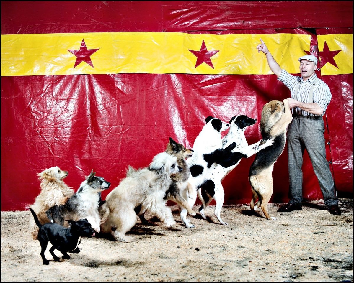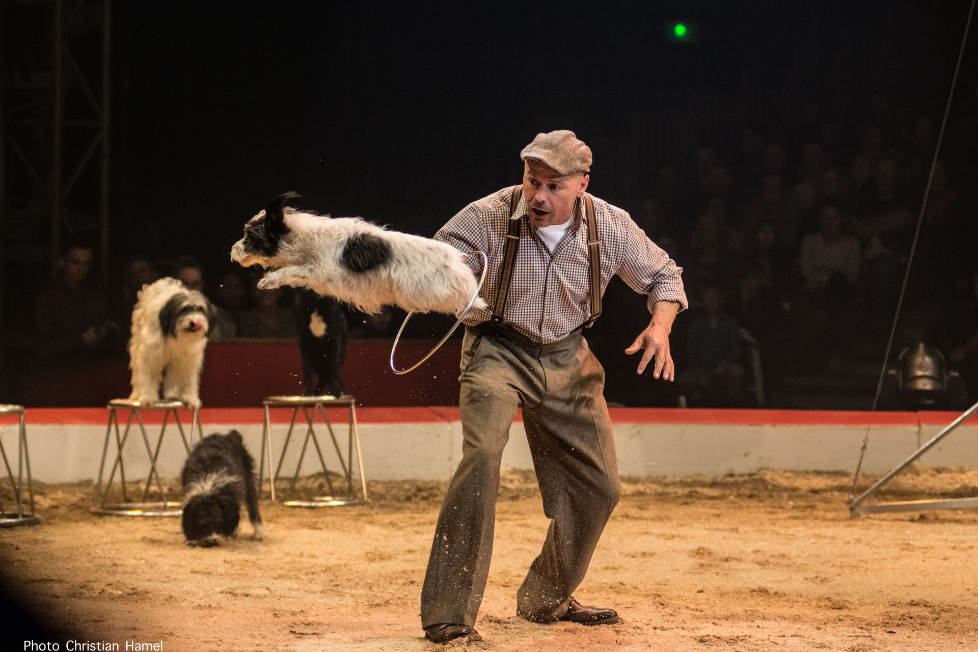 Il a aussi travaillé avec des chevaux et des éléphants mais c’est avec les chiens qu’il s’est distingué, remportant quatre prix spéciaux au Festival International de Monte Carlo en 2009. Chaque élève est pour lui unique, il sait quel exercice il saura bien lui apprendre et, au bout de deux ans, tous les acteurs sont capables de participer à la folle galopade. Vous remarquerez aussi que Wolfgang court autant que ses partenaires alors ne vous étonnez pas qui vous le voyez autour du chapiteau faire son footing avec les artistes à quatre pattes !