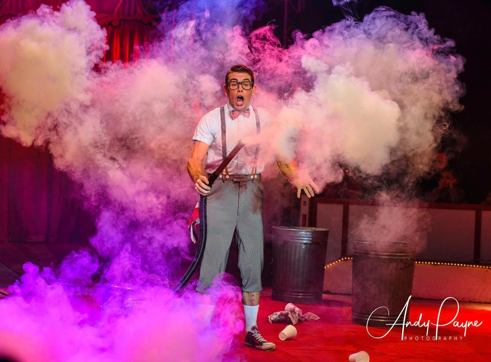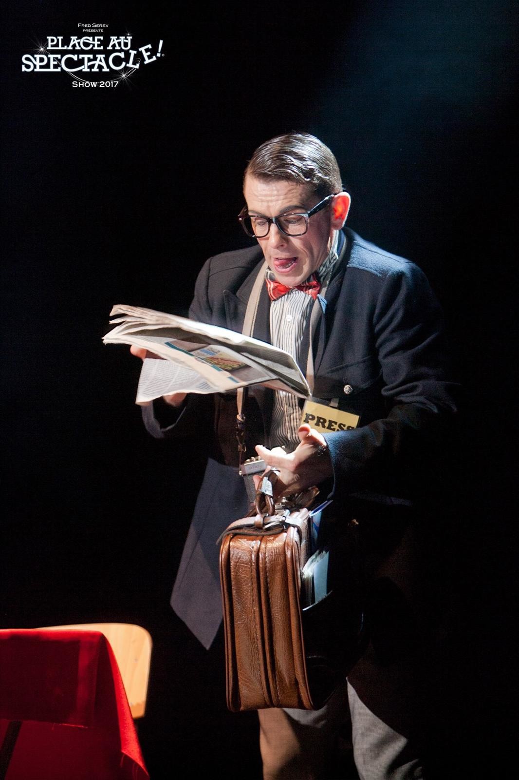 À l’heure du Brexit, ce talentueux auguste se trouve en équilibre entre ses origines françaises par son père et anglaises par sa mère. Mais son terrain de jeux n’a pas de frontières, car Émilion a trouvé parmi les passe-temps et les centres d’intérêt des jeunes générations tout ce qu’il faut pour renouveler l’art clownesque. Ne vous étonnez pas de le voir chercher des « Pokemon » dans les gradins ou de faire des selfies avec un portable géant. Admirateur de JerryLewis, il a adapté le sketch de la machine à écrire que Jerry Lewis créa pour le film « Un Chef de Rayon Explosif » en 1953. Et ce n’est qu’une partie de son répertoire !