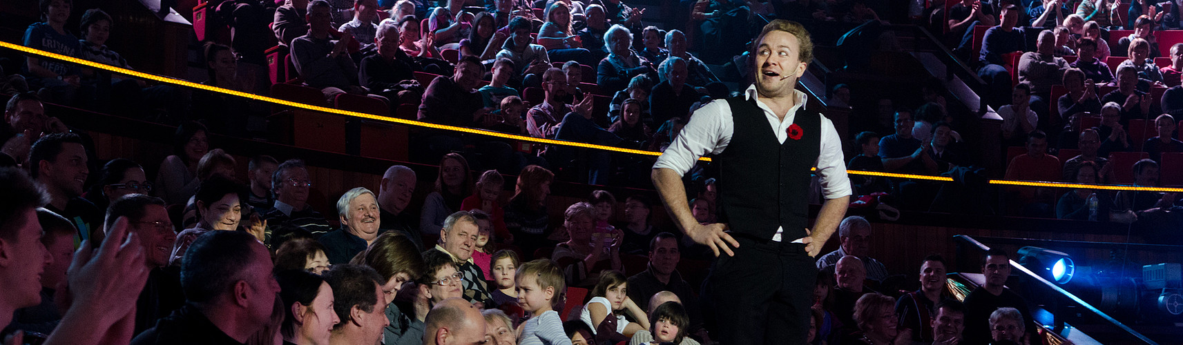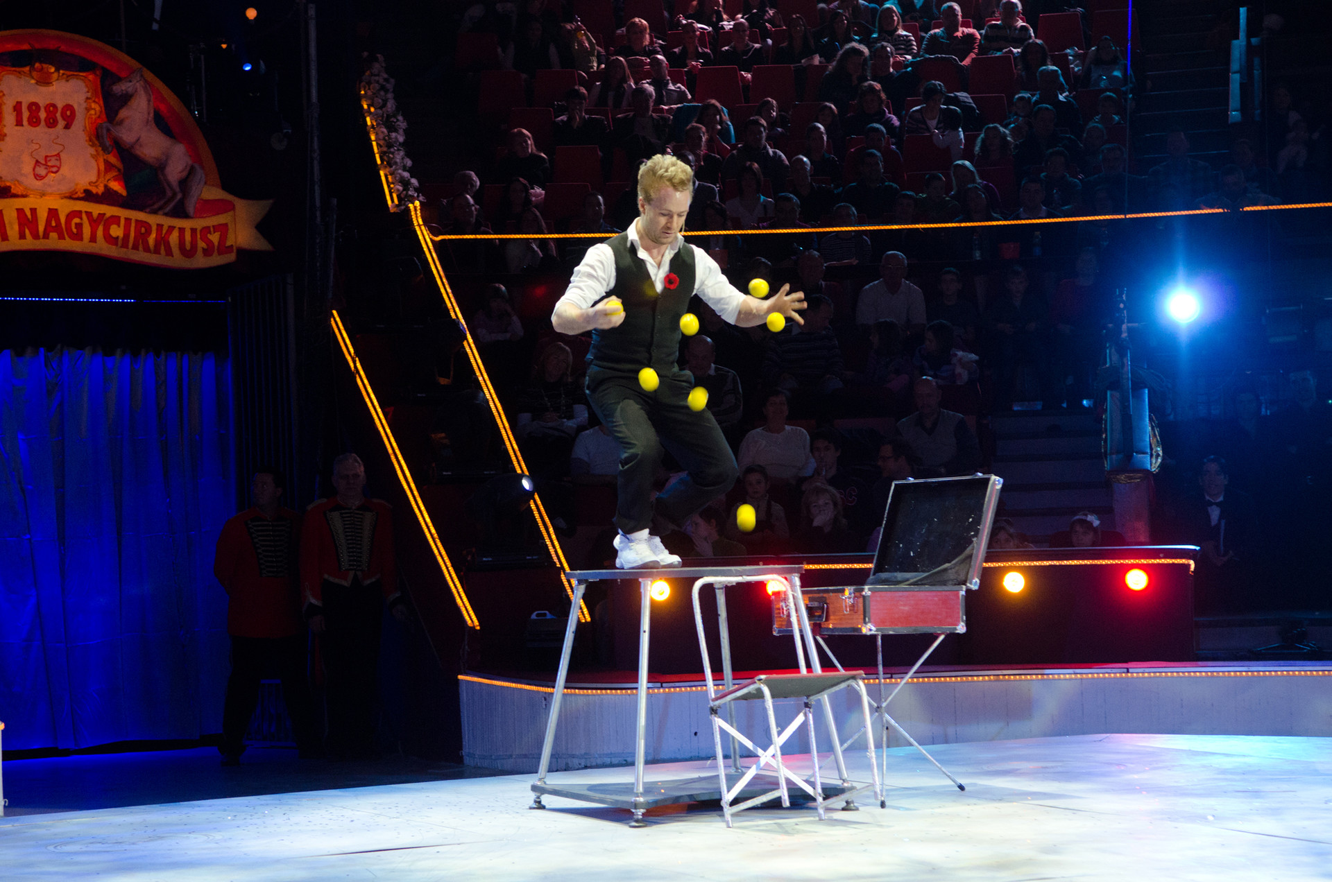 Pour son numéro de jonglage, son mot d’ordre est le rebond : les balles rebondissent par terre, sur une table, sur une chaise, parfois de l’une à l’autre. Johan ne se contente pas de jongler au plus haut niveau, il sait ponctuer son numéro de clins d’œil comiques. Après s’être consciencieusement bandé les yeux, il termine par une dernière prouesse et nous gratifie d’une poignée de poussière d’étoiles !