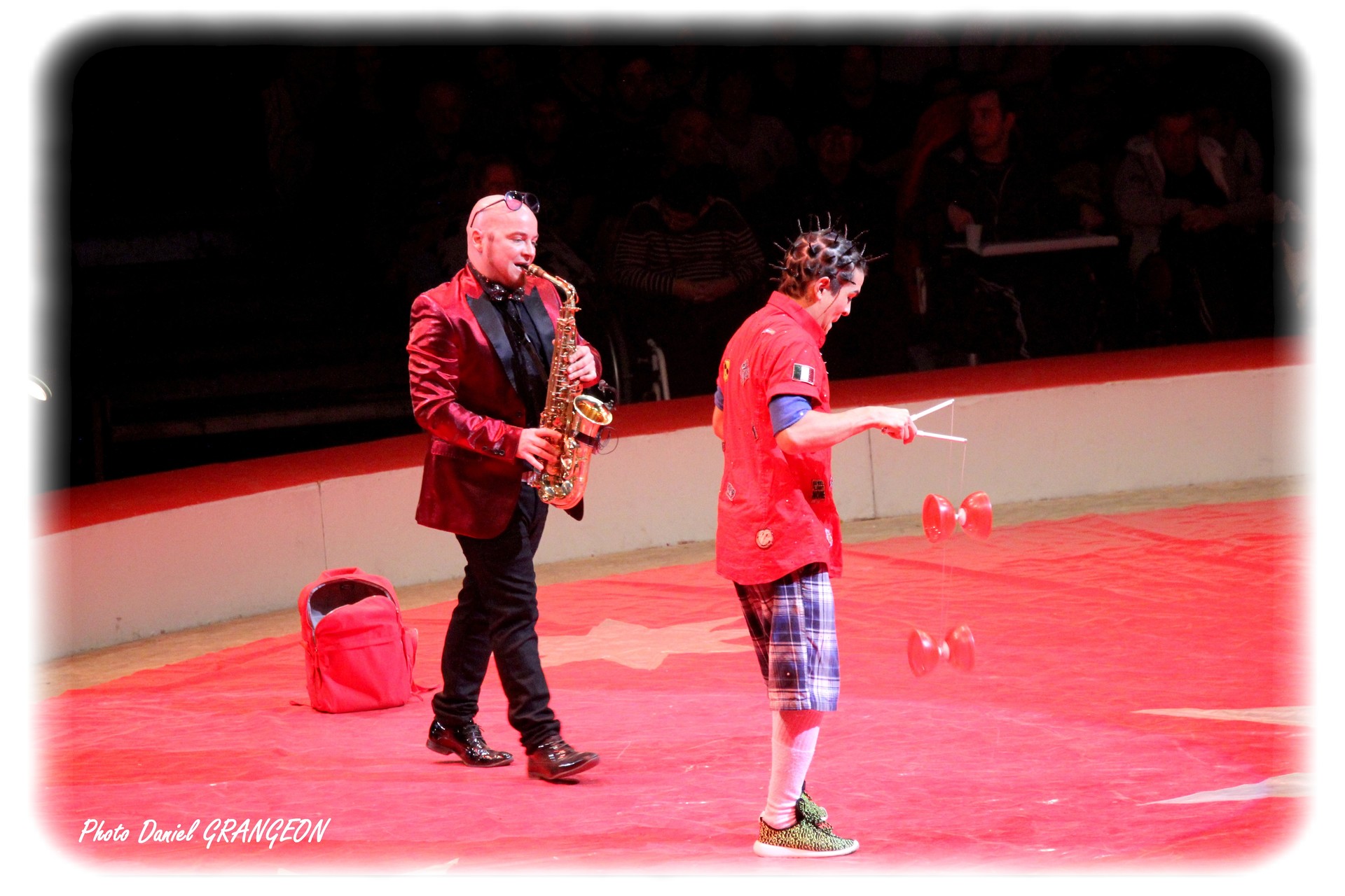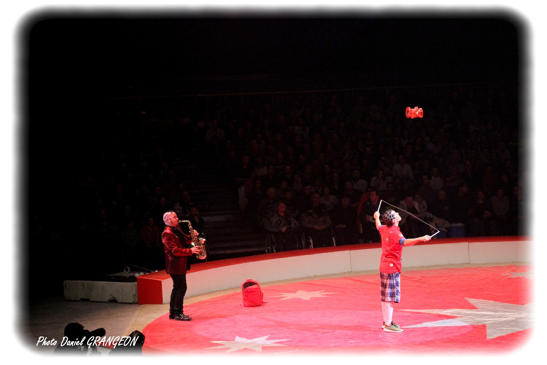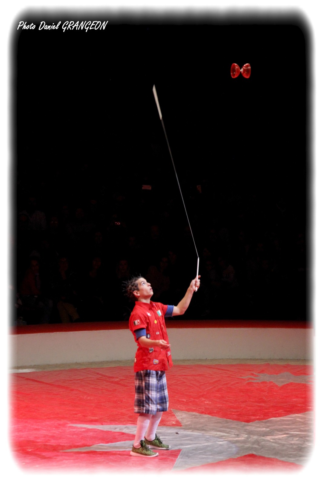 Au début, c’était un amusement, une occupation pendant les tournées. Mais Steve Caveagna a vite découvert qu’il était réellement doué pour cette forme de jonglage de plus en plus pratiquée au cirque. Après avoir maîtrisé deux, puis trois diabolos, il se place aujourd’hui au plus haut niveau de la spécialité en en maîtrisant quatre qu’il lance très haut avec des passes dans le dos et des pirouettes : diabolique diaboliste : Steve Caveagna !