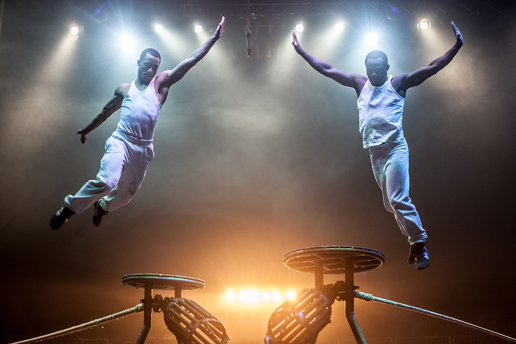 Ce soir, José travaille avec son frère Angel. Simultanément, ils réalisent sur deux cordes élastiques des sauts périlleux en dansant sur des musiques inspirées par celles des esclaves africains qui arrivèrent en Colombie au XVI siècle. Ils ont été formés à l’Escuela Circo para Todos fondée à Cali par Felicity Simpson et José a parachevé son apprentissage à l’Académie Fratellini de Saint Denis (93210).