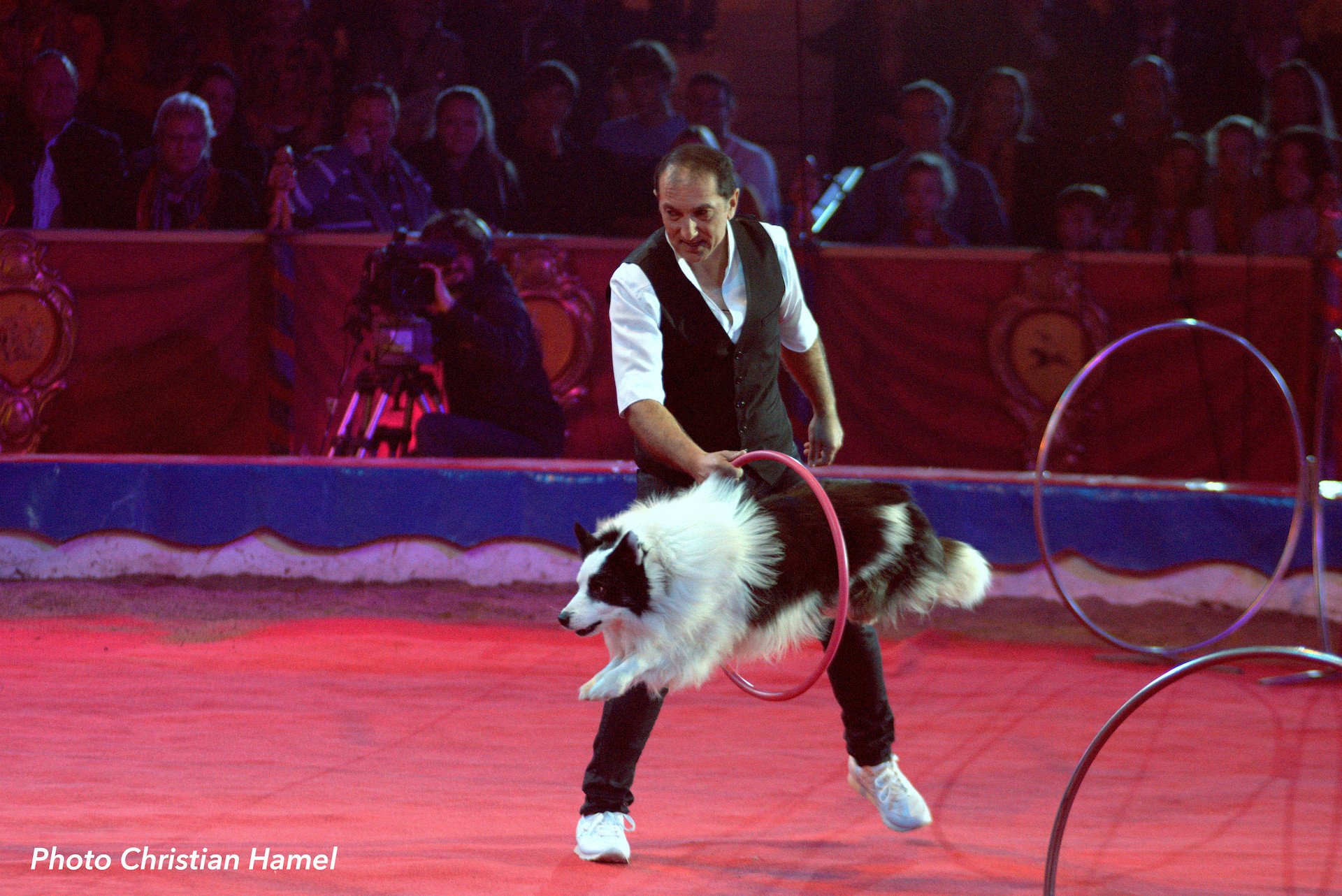 Son grand-père dirigeait un cirque dans l’ex-Allemagne de l’Est, son père domptait des fauves et sa mère présentait des serpents. Rien de plus normal pour Sandro que de s’occuper des animaux : les éléphants, les chevaux, les zèbres et, même les otaries n’ont pour lui aucun secret mais, après avoir travaillé dans les plus grands cirques européens, Sandro a voulu créer son propre numéro avec des chiens. Pas de costumes ridicules ni d’exercices pénibles : ses élèves, border collie, belgian papillon ou chihuahua, galopent dans tous les sens. Sandro vous confiera que ce sont eux qui ont créé le numéro, son rôle consistant surtout à mettre un peu d’ordre dans leur histoire.