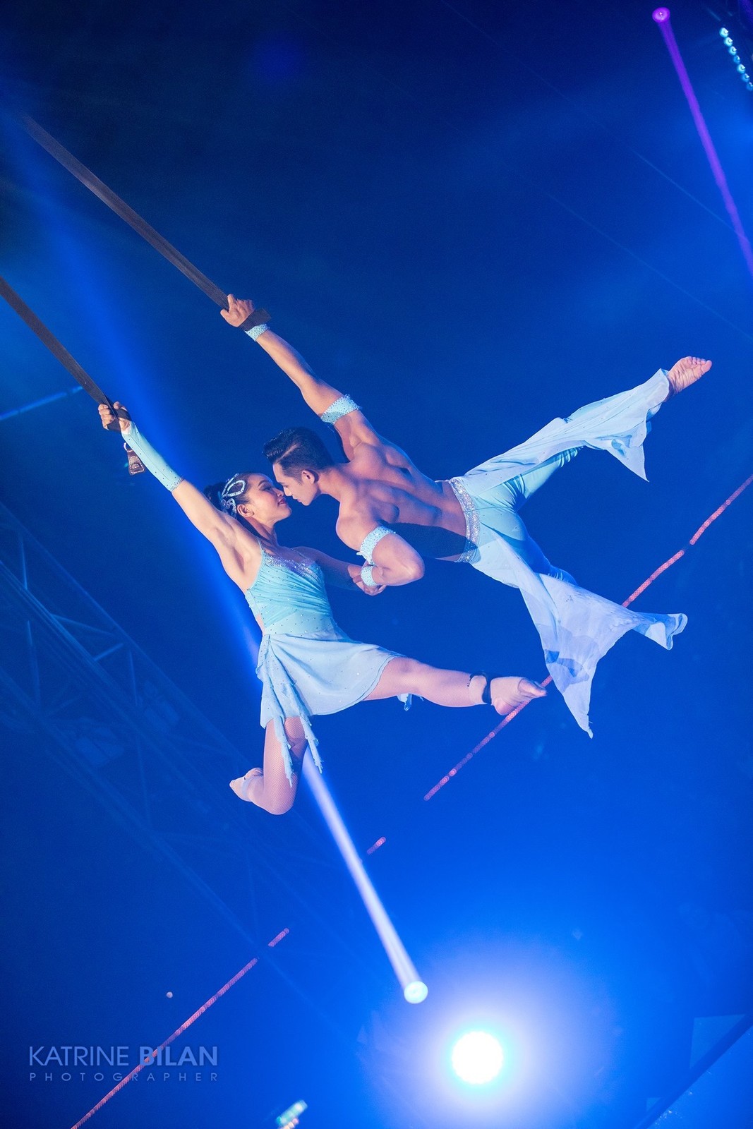 Leur prestation ressemble à celle des danseurs où la discipline physique doit s’effacer derrière l’élégance et l’harmonie des gestes. Leur pas de deux dans l’espace nous conte une belle histoire d’amour, riche de cet exotisme qu’on trouve dans les romans de Pierre Loti, qui fut, lui-même acrobate à ses heures !