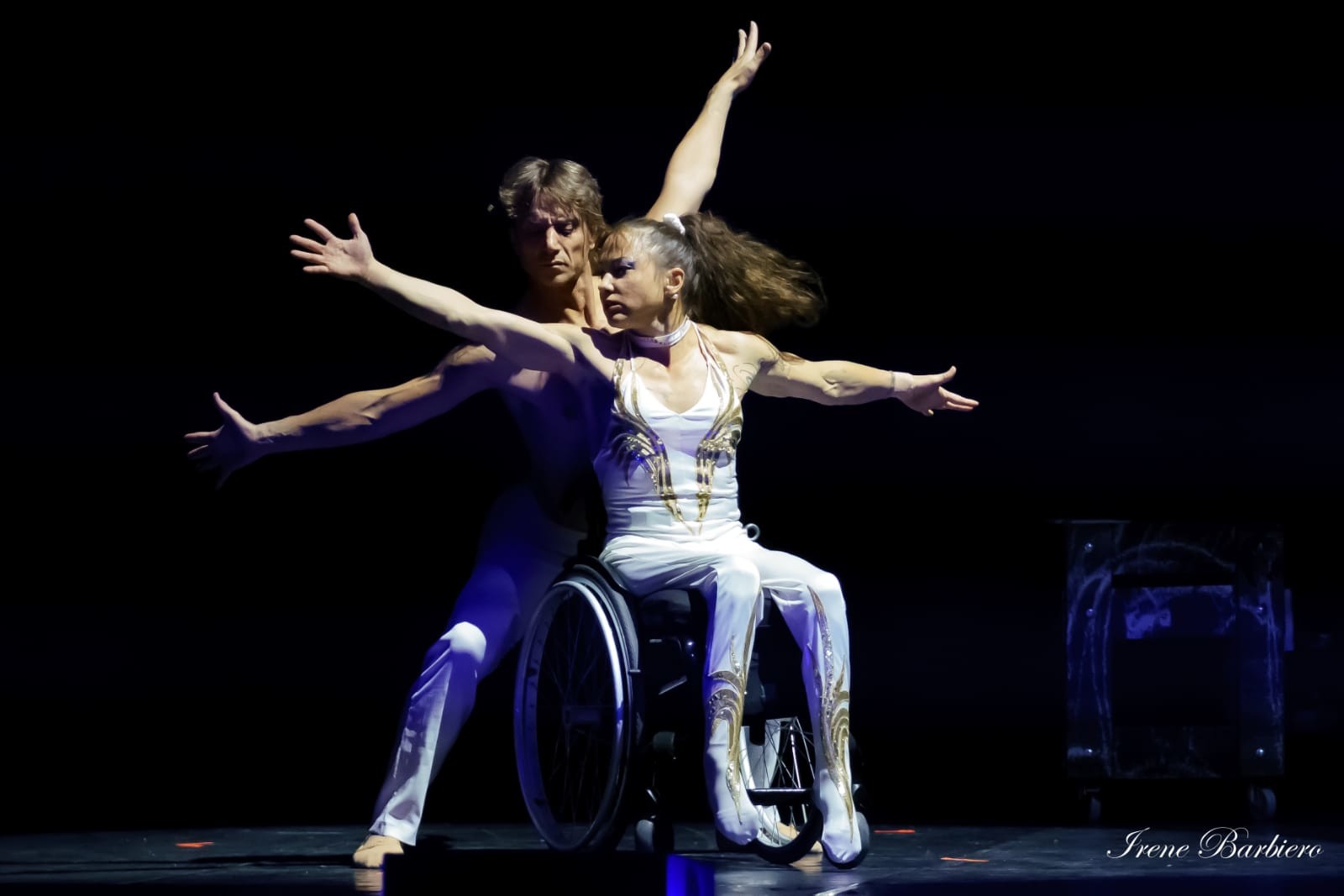 Diplômée de l’École de cirque Berlin, elle se lie à la famille suisse du cirque Nock et travaillera en duo aérien jusqu’à ce jour de 2007 où, lors d’une répétition, elle fait une terrible chute qui la laisse paraplégique. Avec son compagnon devenu son mari Didier, ils vont continuer à vivre en créant leur propre spectacle.