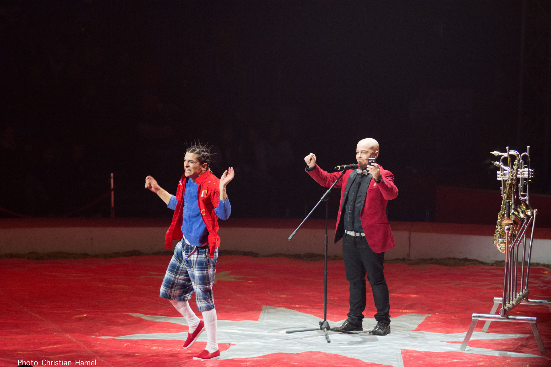 On ne se lasse pas de rire avec ces deux comiques bien ancrés dans la tradition clownesque. Ils nous ont montré à quel point ils savaient utiliser en piste tout ce qui fait l’environnement de notre vie trépidante. Ce sont d’excellents musiciens, mais ils ne s’arrêtent pas là et ils ajoutent à leur concert comique, l’évocation d’un immense chanteur aujourd’hui disparu : Freddy Mercury.