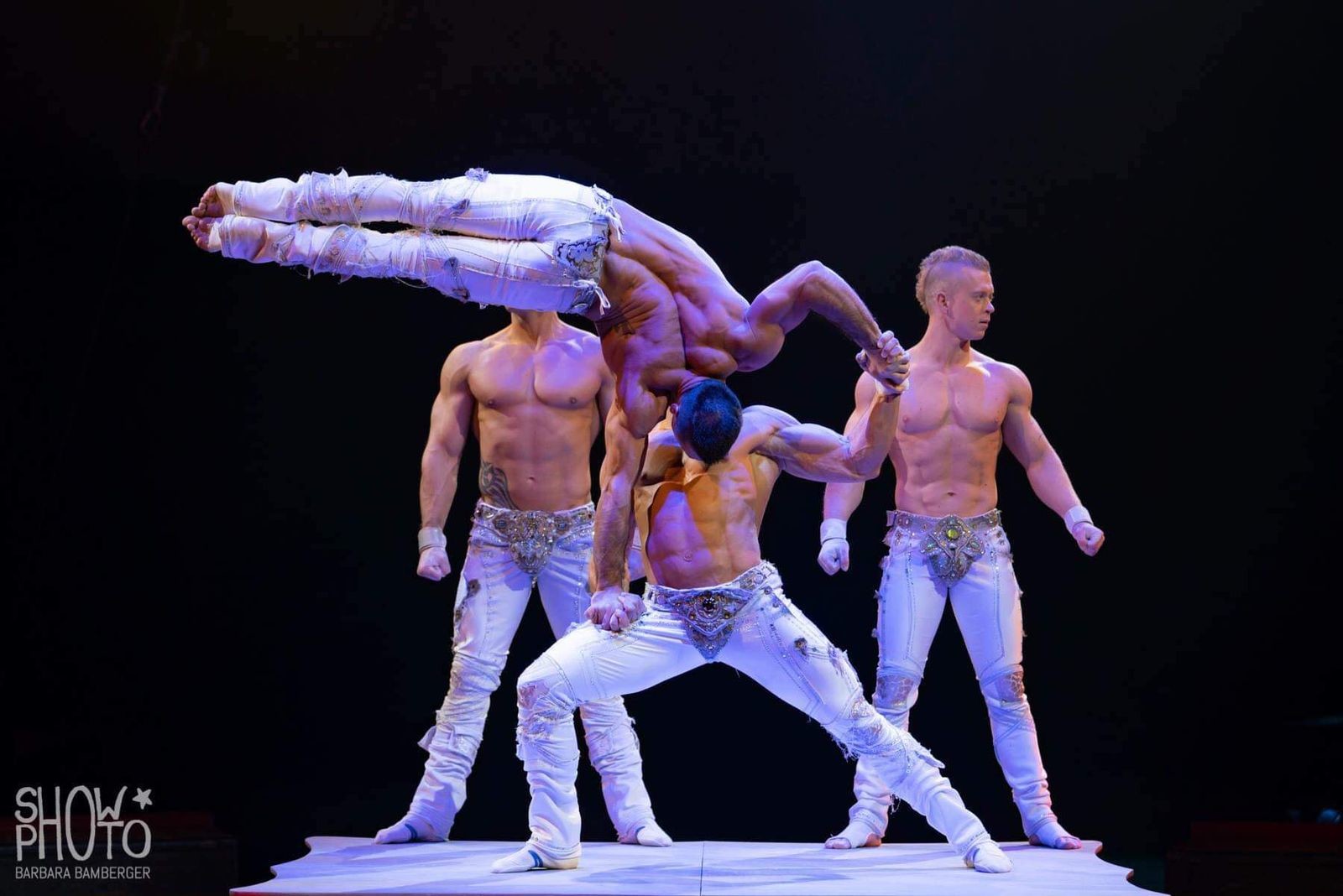 C’est en 2011 au Festival d’Ishevzk (République d’Udmurtie) qu’on découvrit ce numéro extraordinaire. Autour de Valeriy Yemetz, membre fondateur, Alex Kurinskyi, Sergii Dubovyk et Ruslan Kiaynytsia échafaudent leurs châteaux de cartes humains avec des gestes mesurés. Le numéro a triomphé partout dans le monde et, pendant plus de cinq ans, ce quatuor a été à l’affiche des spectacles « Wyld » et « Vivid » du Friedrichstadt-Palast de Berlin, le plus grand music-hall d’Europe et ils viennent de ravir les fervents du Royal Palace à Kirrwiller en Alsace.