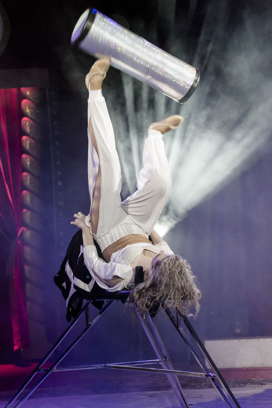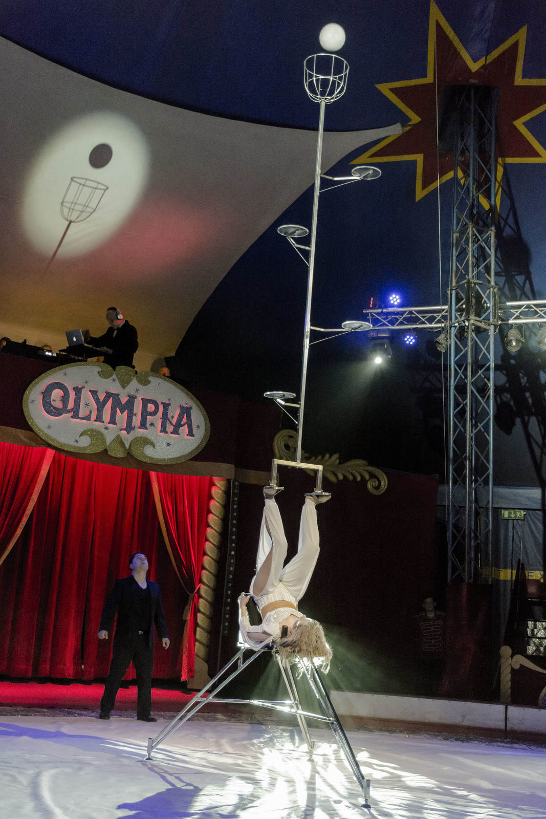 C’est le cas d’Irena Lagroni qui appartient à une des plus anciennes dynasties de son pays. Elle démontre une étonnante adresse pour jongler avec ses pieds et termine en maîtrisant les rebonds d’une balle qui s’élève tout au long d’un mât qu’elle maintient en équilibre... toujours avec ses pieds !
