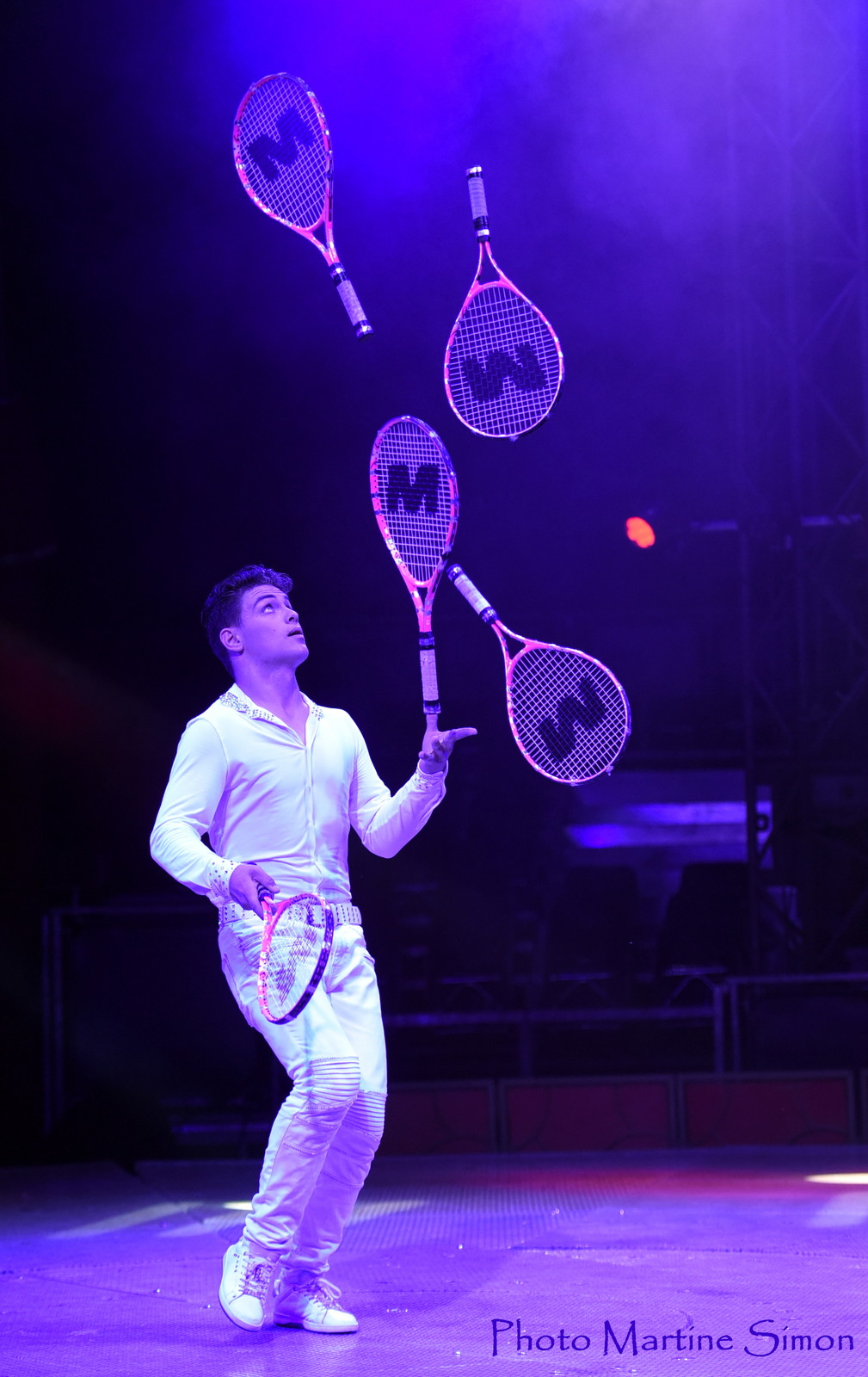 Il excelle même avec les raquettes de tennis. On attribue au jongleur américain Bilton la paternité de cette spécialité qu’il exerçait vers 1874 dans un décor de court de tennis. Jimmy se place au plus haut niveau en jonglant avec six raquettes, ce qui constitue une authentique performance.