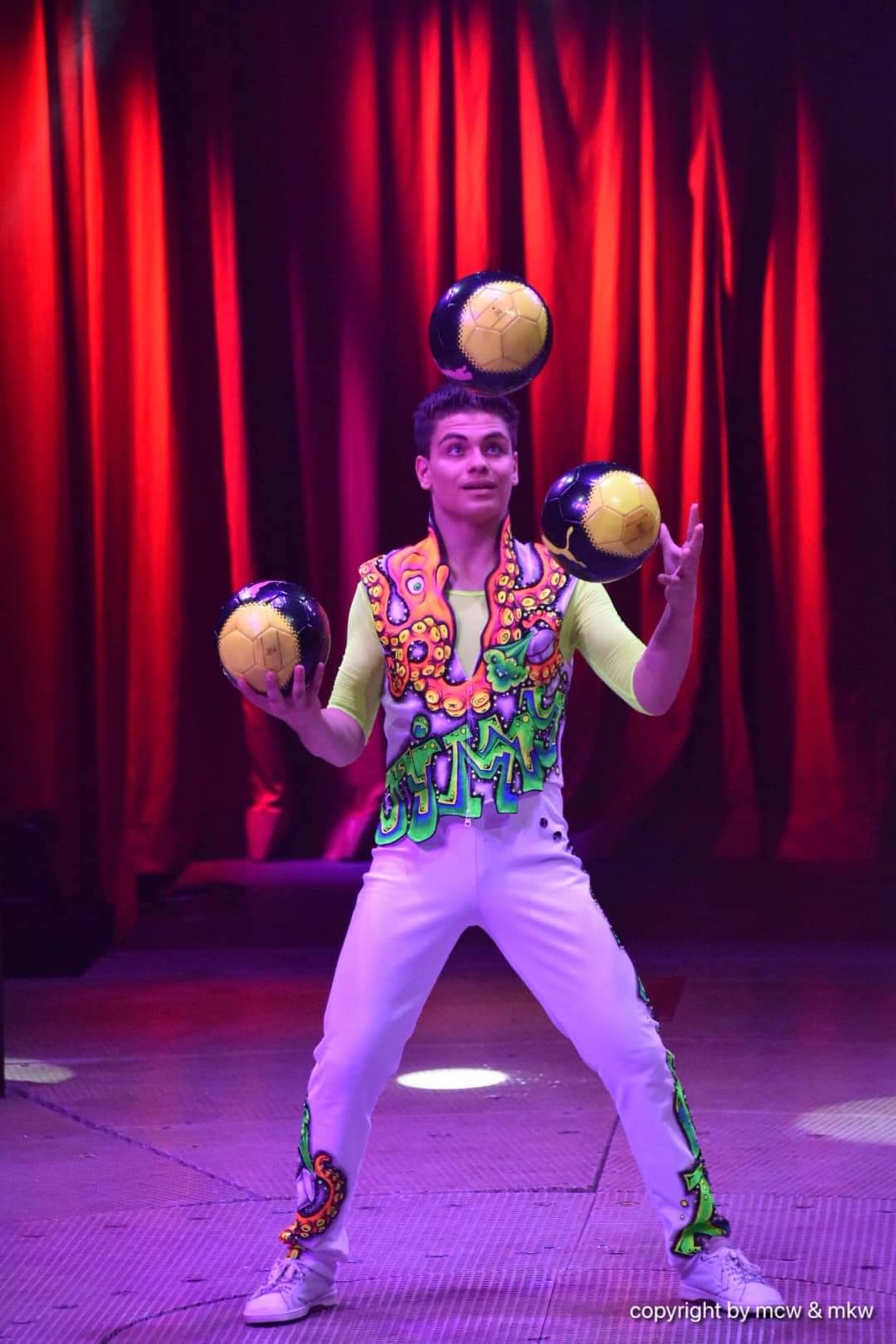 Jimmy est le fils de Jan Navratil. Il a choisi de jongler, mais les objets qu’il utilise viennent du monde sportif : il fait littéralement danser jusqu’à cinq ballons.