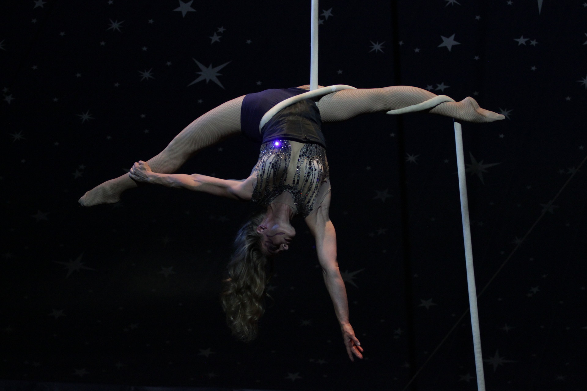 Cette blonde Finlandaise utilise toutes les possibilités de la corde, qu’elle soit verticale ou qu’elle lui permette de se lancer en grand ballant pour oser les échappements les plus insensés. Liina est entrée à onze ans dans une école de cirque.