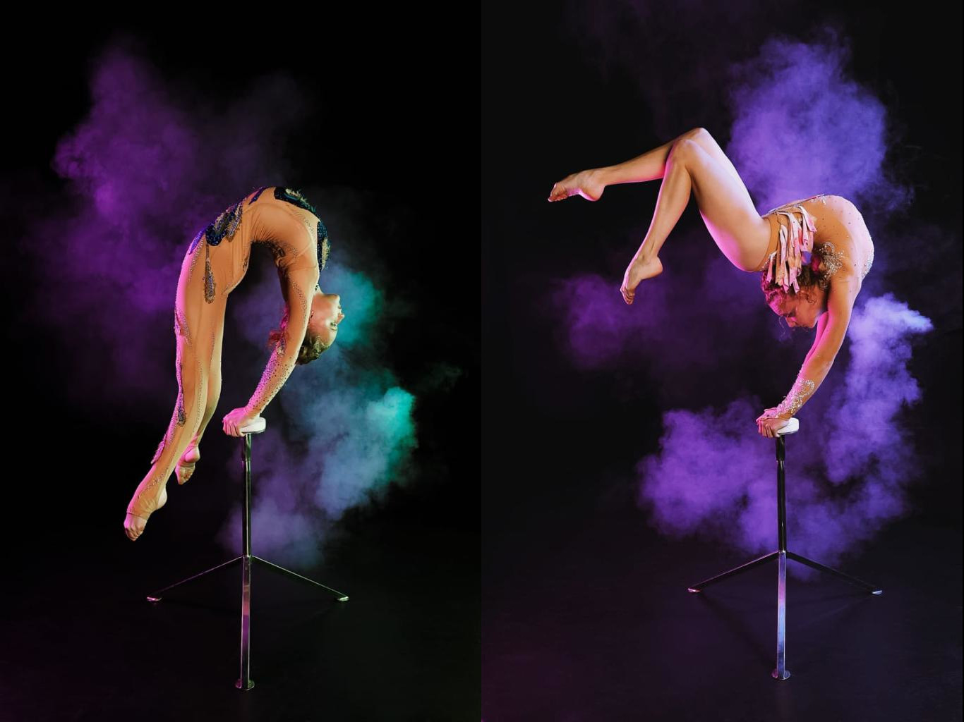Conciliant études et répétitions, elle a réussi l’exploit d’allier la grâce de la danse académique aux figures les plus extrêmes de l’équilibre. Durant les sept minutes de son numéro, elle reste en équilibre sur ses cannes, changeant plusieurs fois d’appuis sur les bras et termine par une série de figures incroyables !